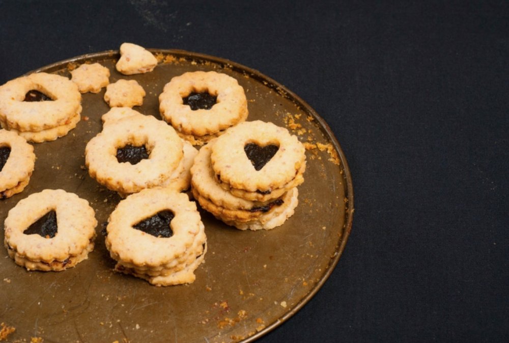 Upečené zdravé linecké cukroví nechte vychladnout a poté slepujte džemem.