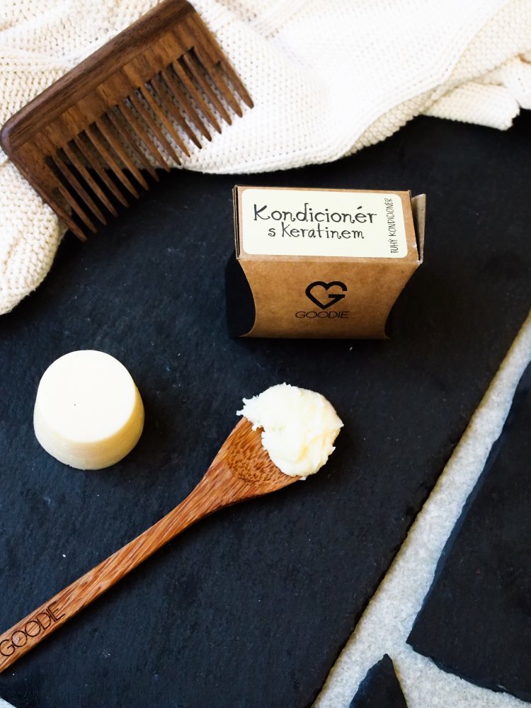 Tuhý kondicionér Goodie obnovuje silu a lesk suchých, poškodených alebo farbených vlasov – vyživuje ich do hĺbky, uhladzuje a uľahčuje rozčesávanie vďaka sile rastlinného keratínu, spiruliny a výživných olejov. A navyše? Vydrží dlho a vďaka kompaktnej tuhej forme je dokonalý aj na cestovanie.